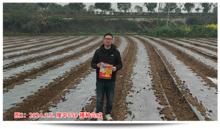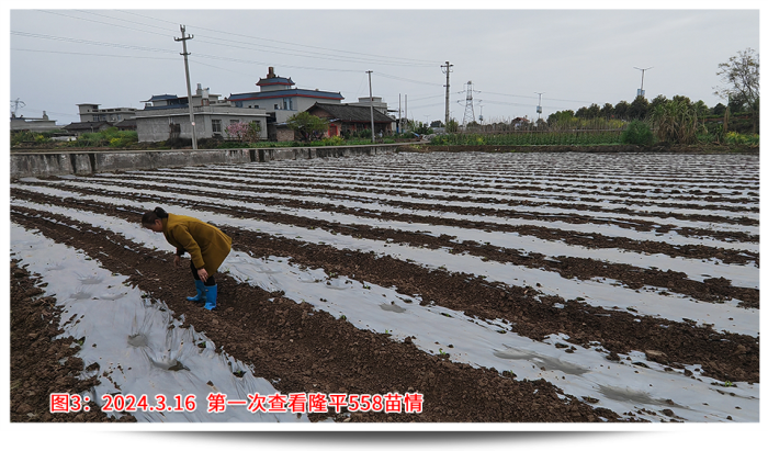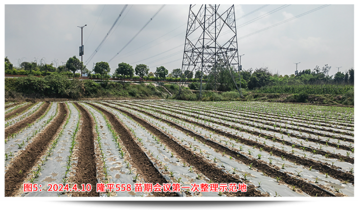 回想年前說(shuō)要召開苗期會(huì)議的時(shí)候,大家都有點(diǎn)不知所措,因?yàn)闆]有先例,客戶也并不看好苗期會(huì)議呈現(xiàn)的效果。決定了要做,那就全力以赴,第一個(gè)問(wèn)題就是示范田的選點(diǎn),要考慮播種時(shí)間、地塊條件、地塊面積、交通便捷、人員配合等,權(quán)衡各要素最終確定在樂(lè)山夾江找地。樂(lè)山夾江水源條件好有東風(fēng)堰灌溉,土質(zhì)肥沃常年種植蔬菜、藥材,地勢(shì)平坦面積規(guī)整更易找到幾畝連片地塊,播種時(shí)間較早能夠保證4月中旬苗子適合觀摩,種植戶經(jīng)驗(yàn)豐富懂得控制密度和水肥管理。從年前初選溝通,到最后落實(shí),由于交通、前茬、面積等因素,前后也溝通了6位種植戶、經(jīng)歷了3次換地,才最終在2月20日確定了地塊,并于3月5日完成播種。設(shè)計(jì)之初首先考慮的就是密度,該地塊密度有2種設(shè)計(jì),一是寬窄行(雙株)的3200株/畝,二是等行距(單株)2600株/畝,同時(shí)保證外觀性狀和產(chǎn)量性狀都有較高的體現(xiàn)。其次是保證整田無(wú)雜草,苗齊苗壯,從播種短短一個(gè)月時(shí)間內(nèi)我去查看了4次。播種時(shí)已做好了地塊除草,確定好行距、株距,然后每窩3粒播種;第一次查看,及時(shí)整理薄膜的遮蓋,了解墑情、苗情,如出現(xiàn)整箱出苗不好,及時(shí)灌溉保苗;出苗整齊后,及時(shí)補(bǔ)苗肥,促進(jìn)長(zhǎng)勢(shì);苗期會(huì)議前,插牌、美化地塊,間苗,祛除弱苗,展現(xiàn)示范地的最佳狀態(tài)。田間管理實(shí)操工作繁重且枯燥,但當(dāng)看見客戶在地里笑著拍攝隆平558的情景,就讓我依舊相信每一份努力的背后,一定會(huì)有驚喜!